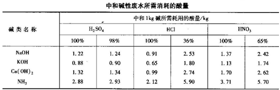 華泉PAC專家介紹在對堿性廢水進行中和時,可首先考慮采用酸性廢水的中和處理。若附近沒有酸性廢水時可采用投加酸進行中和。工業(yè)用硫酸是在堿性廢水中和中應用比較多的酸。中和各種堿性廢水所需的酸量可見下圖。