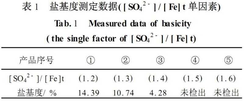 按照GB14591-2006中鹽基度的測定方法測定聚合硫酸鐵的鹽基度,數(shù)據(jù)見表1.